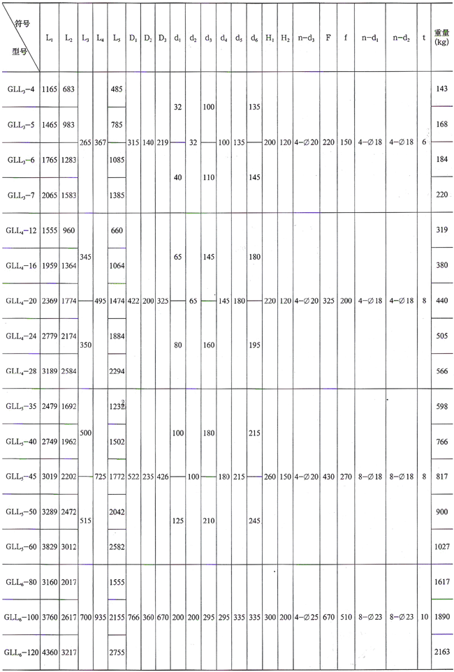 (1)GLC型冷卻器外形圖表